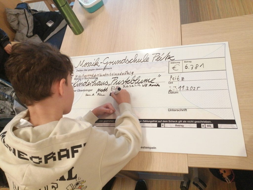 Nach dem erfolgreichen Spendenlauf der Mosaik-Grundschule Peitz 2025 folgte nun der wichtigste Teil: Die persönliche Übergabe der Unterstützung.